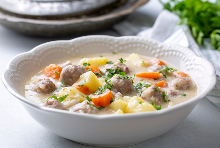 Sulu köfte; dana kıymadan hazırlanan küçük yuvarlak köftelerin patates, havuç, soğan ve salçalı sosla birlikte pişirilmesiyle hazırlanan, ev yapımı lezzetinde doyurucu bir yemektir. Hafif sulu yapısı, sebzelerin aroması ve köftelerin yumuşak dokusuyla hem dengeli hem de besleyici bir öğün sunar.